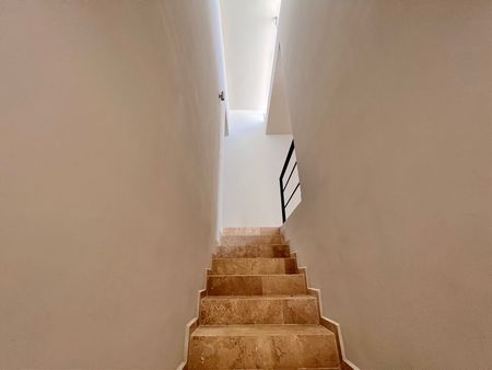 Hacia ambos lados de la escalera, iluminada y serena, descansa la recámara principal con walk-in clóset pronunciado y el baño privado con su tocador doble.